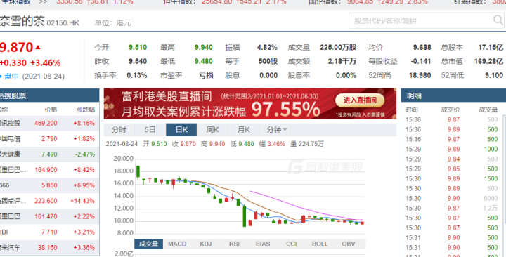 至于奈雪的股价,之前笔者曾写过类似的文章,在奈雪首发之日,股票就破发了。股价由最高价18多港元每股,已经下跌到了9.89港元/股。这无疑对奈雪而言,也是不小的影响。