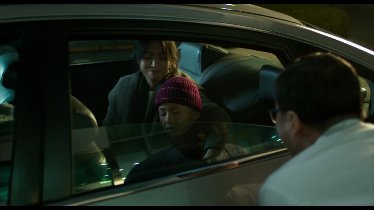 妈妈美罗抱着阿凛坐在后面,爸爸则坐在驾驶位置从前视镜中看着后面的一切。阿凛虚弱的躺在妈妈的怀里,并且说自己很高兴得知美罗怀孕。