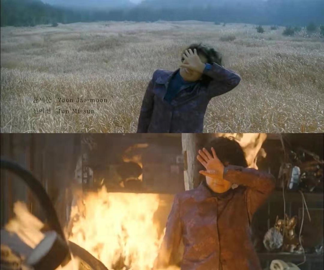 如果你恰巧看过《寄生虫》,那么你就会发现这个动作与宋康昊躺在富人家桌子下时那个动作是相同的,都是对自身尴尬处境的一种绝望和无用的逃避。