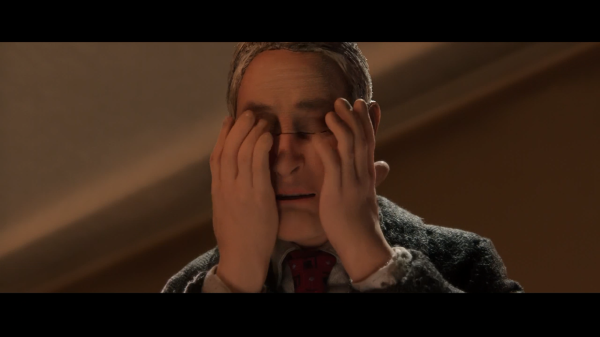 到了后边,对导演这种安排的目的就大致清晰明了了。导演通过这样的表现形式来让整个作品的意识形态建置在“本我和自我的对峙之中”。这样,整个片子探讨的,也就不再仅仅是很多人所提到的“道德”和“人性”,《失常》所要展现的最重要的主题,就是对抗,这种对抗是存在于内心的对抗,同时,也因为借助了“定格动画”这个特殊的载体,使得片子所要表达的抽象意识转变成了具象的、张力极强的戏剧冲突。