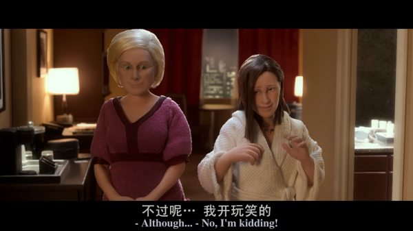 作为查理考夫曼编剧的第一部定格动画,《失常》有着不可替代的地位,他探讨了自私心理和独立人格,以及社会中存在的病态现象和氛围,尤其重要的是,他把人物内心的心理活动通过视听语言的表达形式表现了出现,从而使得整部片子近似魔幻,但又非常“现实”。