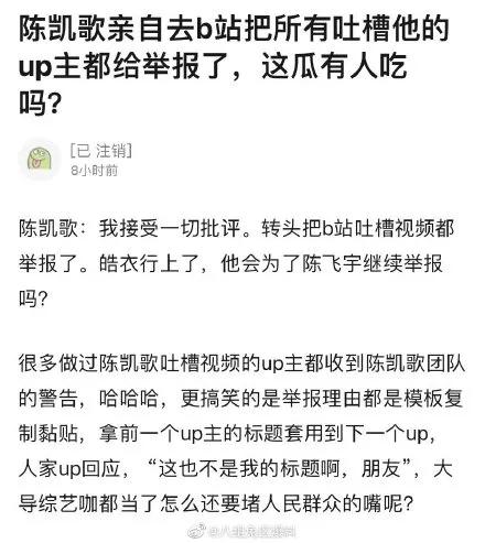 b站好多吐槽过陈凯歌的up主都被举报啦!