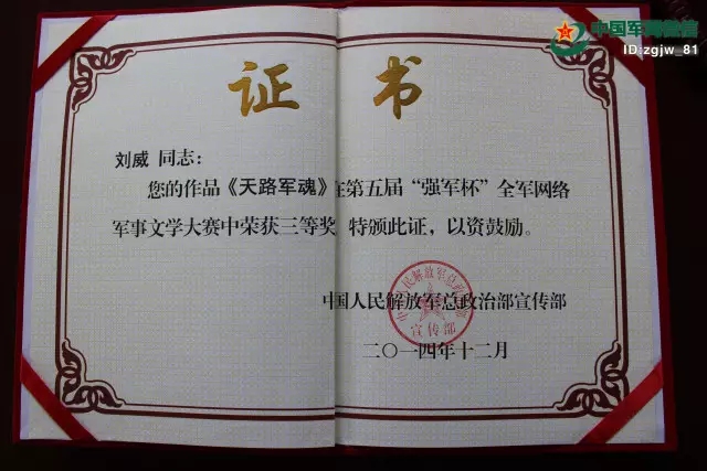 在官兵眼中,刘威是个才华横溢、满腹经纶的“大才子”,不管是写文章还是写材料,他都是一把好手。他认为,写东西不只是一个活儿那么简单,如果能够多看多写多琢磨,还能在此过程中提升自己。一份初稿,写写改改,逐字逐句,斟酌揣摩,这是他的习惯。他写的《门巴将军影评》曾被原《战旗报》发表,还曾在第五届“强军杯”全军网络军事文学大赛中荣获三等奖。他经常教导官兵:“除了争当训练尖兵,还要多看书多写作,注重提升自己的内在修养。”