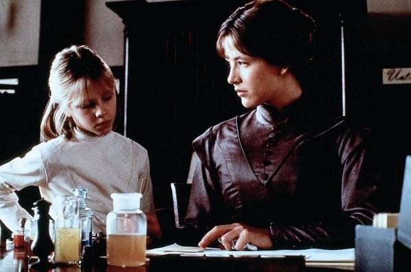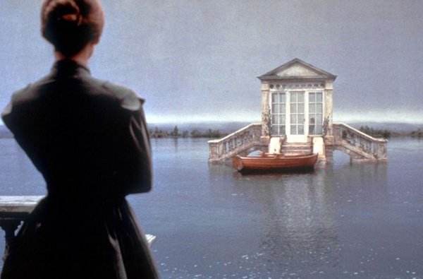 后来,那座贵族府邸迎来了小主人的第四任家庭教师。伊丽莎白满身尘嚣,越过山高水长之隘,走下马车的那刻,他的家不再清冷。当穿过漫长的走廊走到湖边,伊丽莎白看到了湖心亭中的那个女孩子,水汽氤氲,她的眼中亦蒙上了薄雾。多年以来的心心念念,终于在那一刻获得了满足。伊丽莎白深情地凝视着那个女孩,眼中流露出情感,令人泪目,虽然彼时她并不确定眼前的女孩是自己数年之前留下的骨肉。习惯了复制安然在床的植物人原配的空白表情的男主人在重见这位熟悉的陌生女子时,显得局促不安,也许他对这个与自己有过肌肤之亲的女人曾经有过一种难言的情愫,但,为了那场交易的初衷以及对于家族荣光维护需要,不得不压抑自己的个人情感,不得不委屈这个因为自己变得孑然一身,感伤黯然的女子。