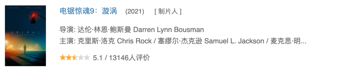 这种情况还发生在其他系列,比如前阵子的《电锯惊魂9:漩涡》,豆瓣评分只有可怜的5.1。
