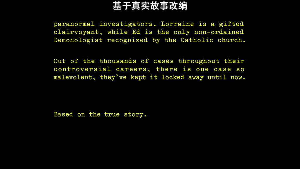 丈夫艾德·沃伦是教会认可的驱魔师,妻子洛琳拥有阴阳眼,能够窥见灵体。