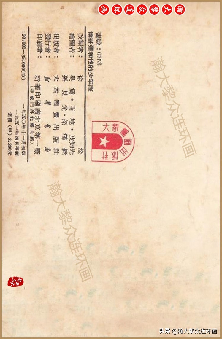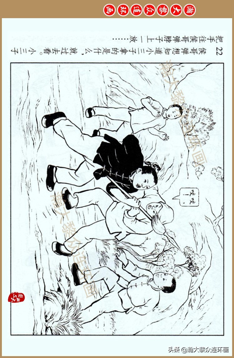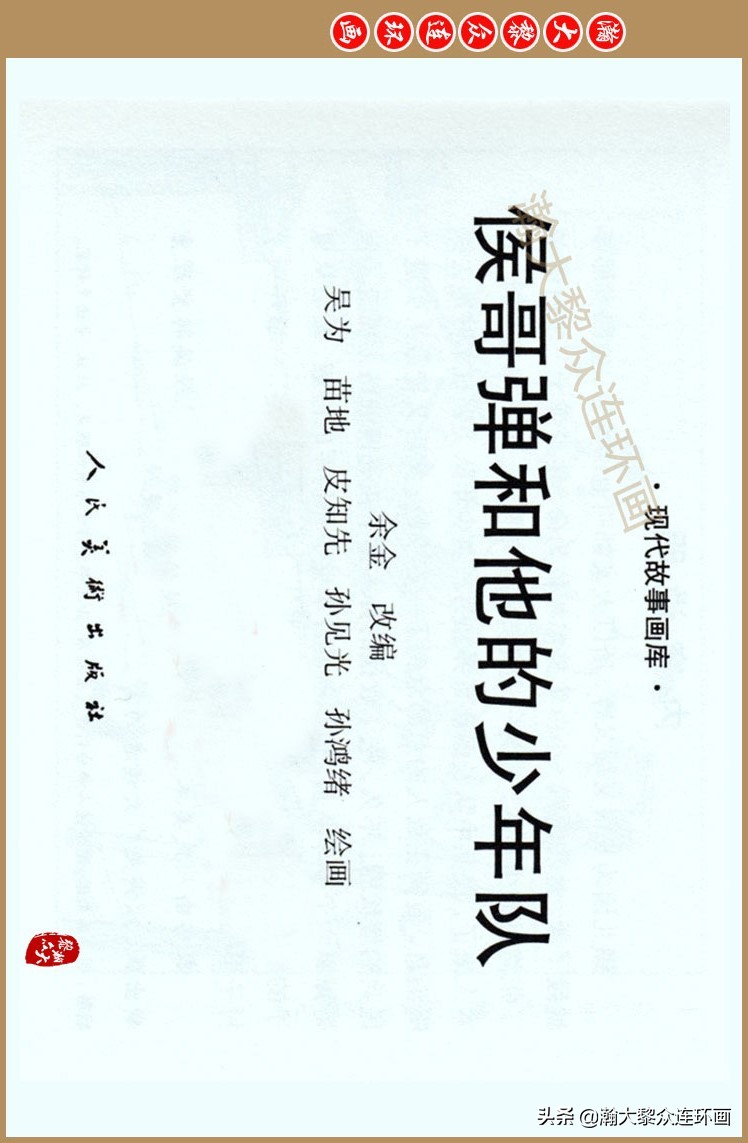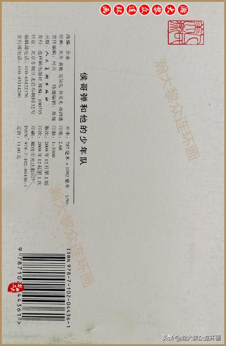 连环画《侯哥弹和他的少年队》吴为、苗地、皮知先、孙见光、孙鸿绪、绘画,上海大众图画出版社1950年初版,定价:3300元,本册为人民美术出版社2008年再版,定价:11.00元。