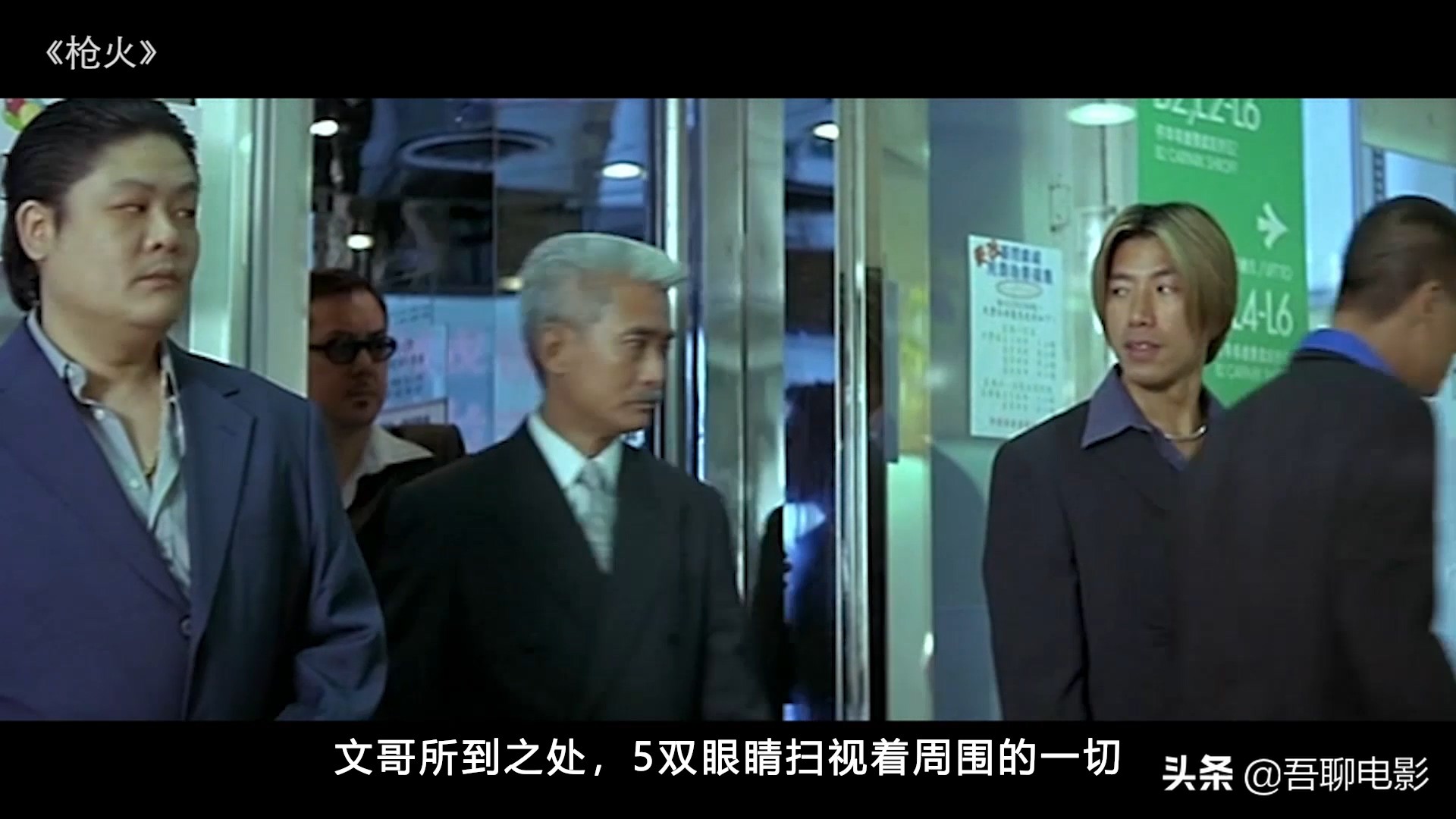 接着阿南(任达华)过来,乱七八糟闲扯几句,然后告诉文哥,人都到齐了,文哥依次跟5人握手,先是阿鬼,后是mike,再来是阿肥,阿来和阿信,文哥是不认识的,他们是新晋的新秀,然后文哥依次握手,看上去这个老大很亲民,没一点架子,他们就是文哥之后的随行保镖。