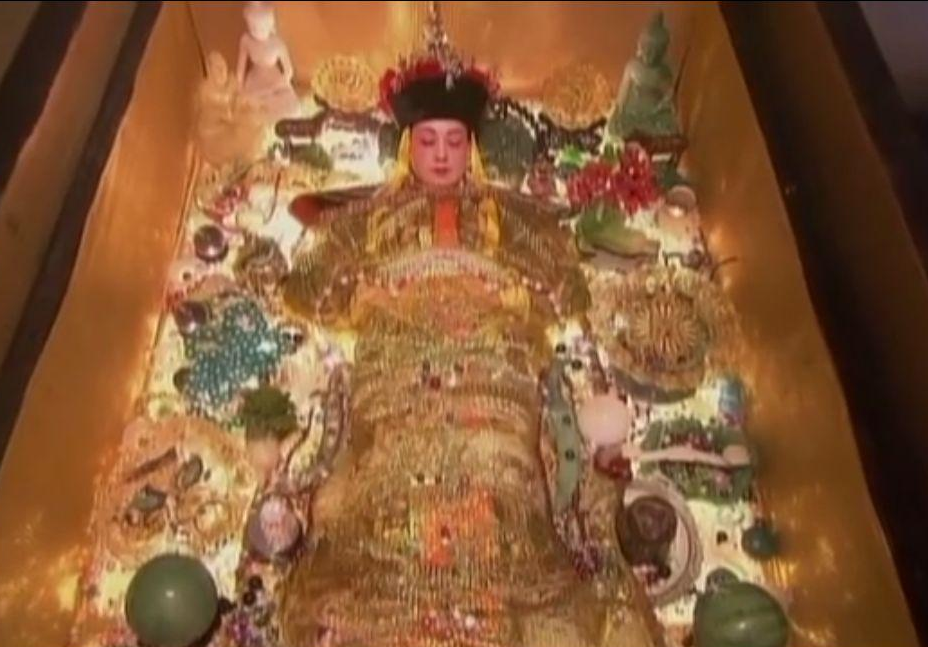在慈禧墓中,发现了大量的玛瑙、珍珠、玉器、金银器皿,其陪葬的文物多达白银亿两。孙殿英率军队将慈禧的东陵洗劫一空,只剩下明黄陀罗尼经被被不识货的盗墓贼丢弃,1979年清理地宫时才被考古人员发现。