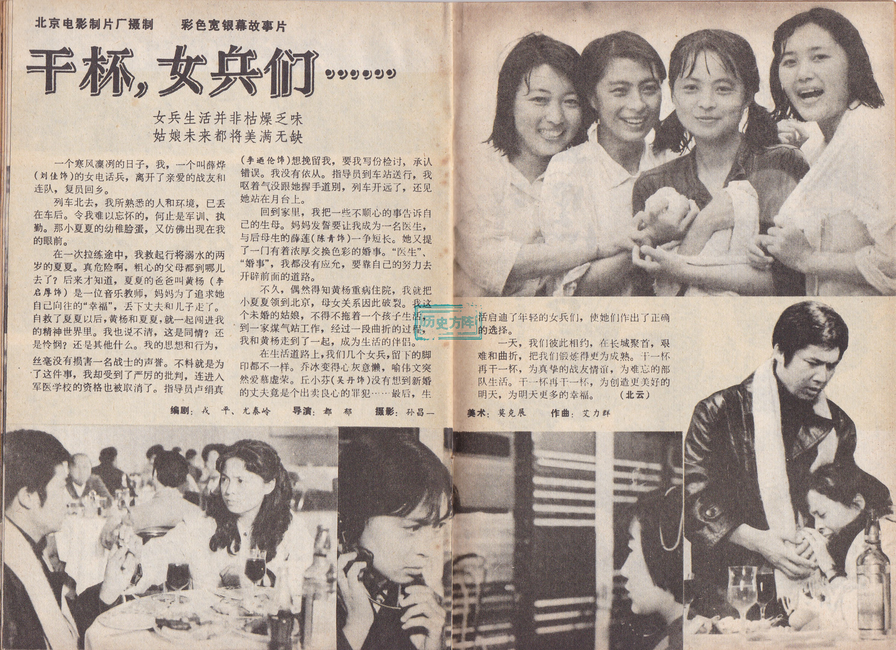 北京电影制片厂《干杯,女兵们》,讲述的是1976年冬天,一群复员女兵即将登上列车回到北京去。电话连女指导员卢秀贞前来为她们送行,女兵们和她依依惜别,唯独薛烨没有和她握手......
