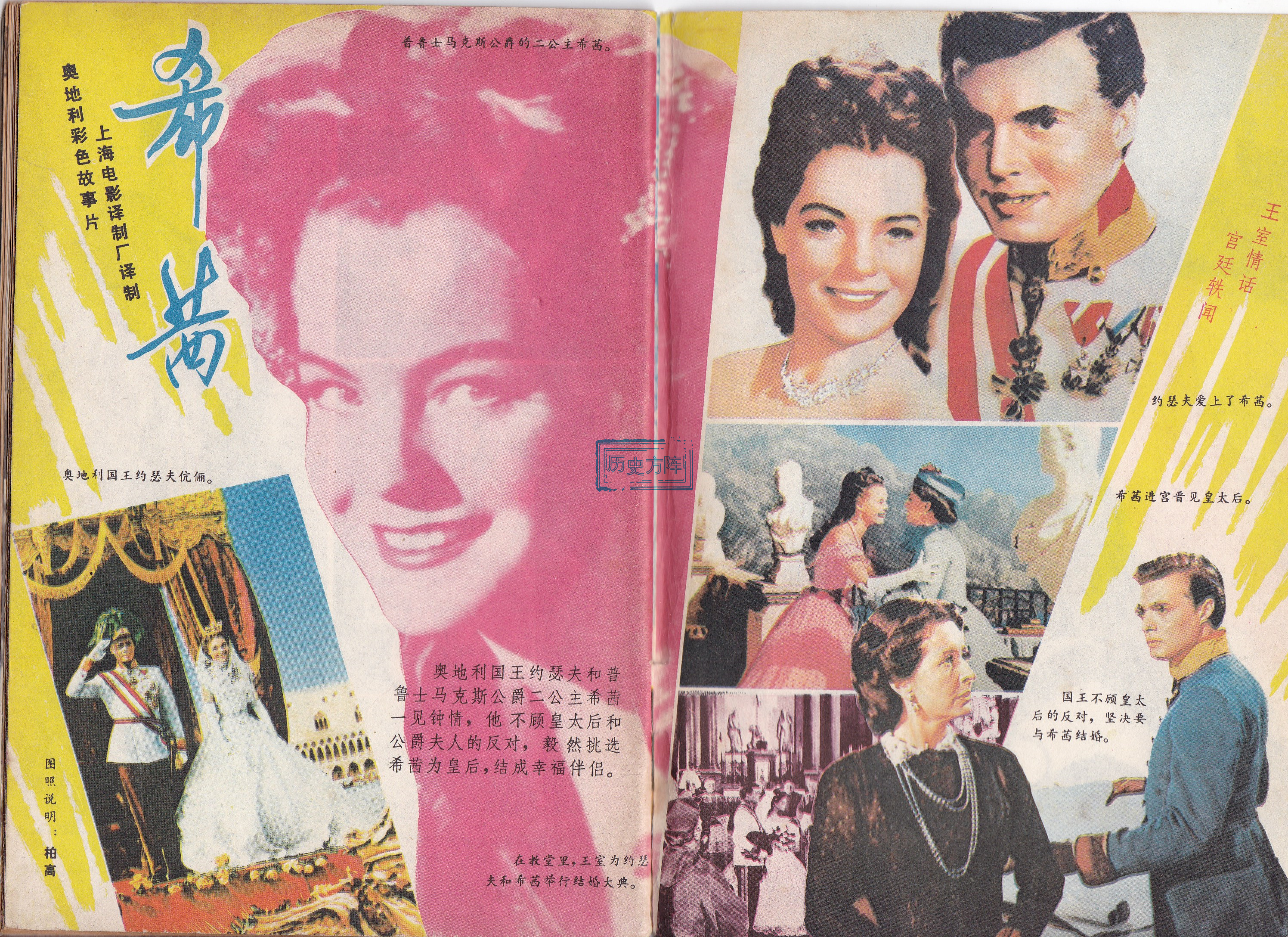 奥地利彩色故事片《希茜》剧照。上海电影译制厂译制。讲述的是奥地利国王约瑟夫和普鲁士马克斯公爵二公主希茜一见钟情,他不顾皇太后和公爵夫人的反对,毅然挑选希茜为皇后,结成幸福的伴侣。