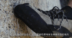 “如果你滑倒了,你的手可撑不住你,你时刻都站在微凸的边沿上,也就是岩石质地发生细微改变的地方。只是这两个小小的接触点支撑着你不掉下去。而当你向上爬时,就只剩下一个支撑点了。”