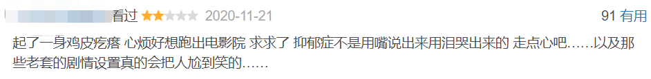 特别是,当剧情进展到70%的时候,导演才突然想起来,还有抑郁症这回事。