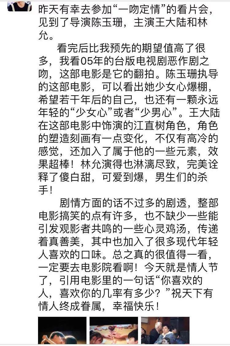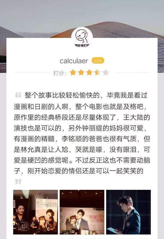 观众一:我打了10分。之前的韩版日版,包括台湾版的电视剧《一吻定情》我都看过。我觉得这次的《一吻定情》是一部非常具有少女心的电影。