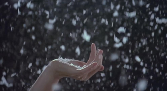 最唯美的,莫过于在圣诞夜他为嘉莉做出的冰雕,毫无生气的冰块在剪刀手的雕琢下,呈现为一个晶莹剔透的天使般的嘉莉形象,惹得后者在白雪般的冰屑下翩翩起舞,对爱德华的爱意也悄然涌上心头。