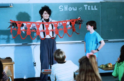 佩格的小儿子凯文,对爱德华畸形的双手冷嘲热讽,当看到自己同学把小动物带到学校吸引了大家的眼球后,他处于妒忌,把爱德华也带进了学校,让对方卖力地表演来满足自己的虚荣心。