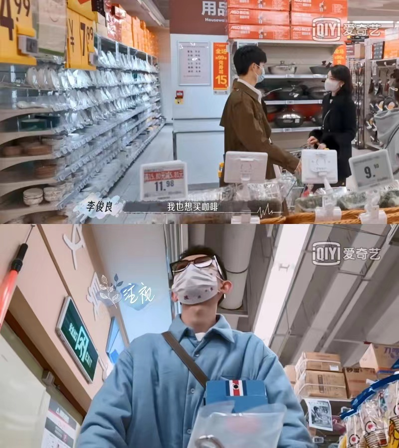 到了超市,王蓓说要买咖啡,李俊良立马竖起耳朵,紧紧黏住王蓓说他也想买。