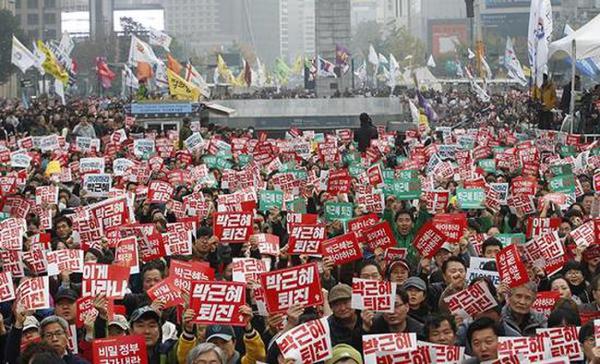 数万民众聚集在首尔市中心光化门广场,要求朴槿惠下台。前一阵比较火的《四重奏》中女主卷说:人生有三个坡,上坡、下坡和意外坡。连朴槿惠都没想到,自己的政治污点会由闺蜜女儿炫富而逐渐被揭露。不过,也不是意外,毕竟韩国总统总是逃不了以“丑闻”落幕的下场。