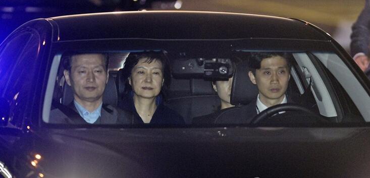 当地时间2017年3月31日,韩国首尔,韩国前总统朴槿惠被批捕,乘车前往位于京畿道义王市的看守所。此时的朴槿惠卸掉了所有的妆容,面临的将是无期徒刑或十年以上的牢狱生活。