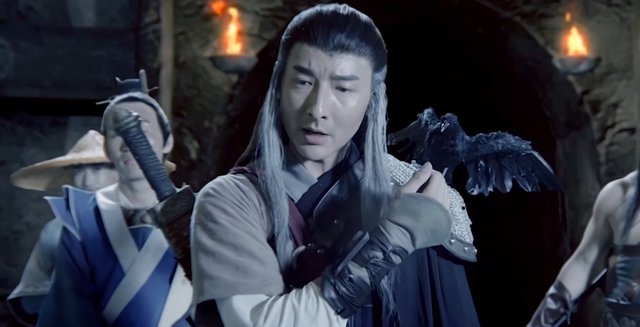 独臂大侠杨过不再是跟一只雕一起行走江湖,而是改成了主角扛在肩膀上的一个乌鸦标本。