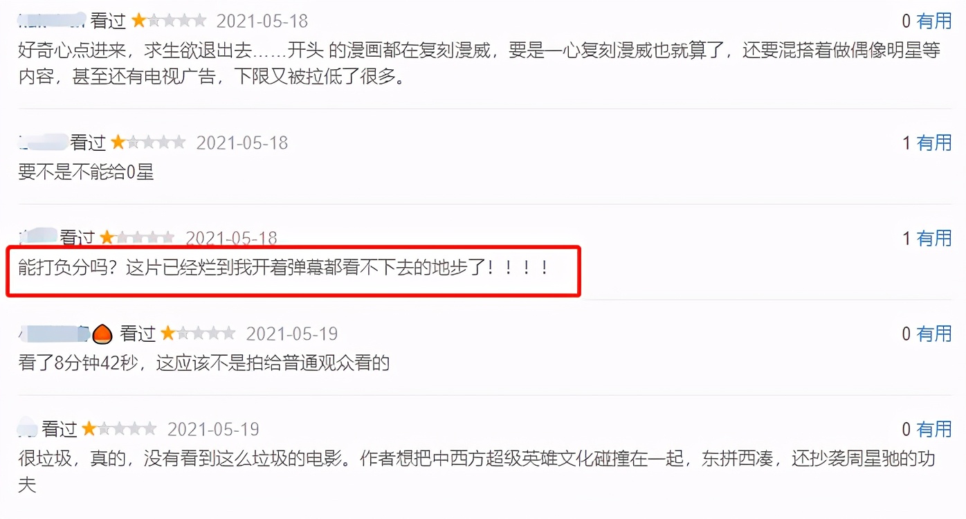 由于好奇心作怪,刚开始不少观众都被这部电影给吸引进来,不过在看过之后又“求生欲般”退出,甚至有观众直言可以打负分吗?已经到了即使开着弹幕也看不下去的地步了。