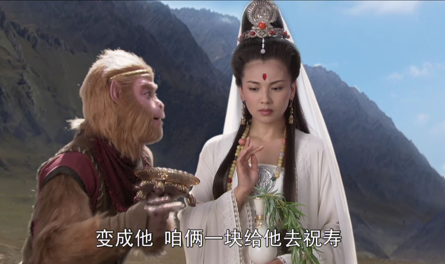 比如观音菩萨跟孙悟空去降服黑熊精的时候,菩萨就变做了一条蛇精,当时孙悟空就傻了: