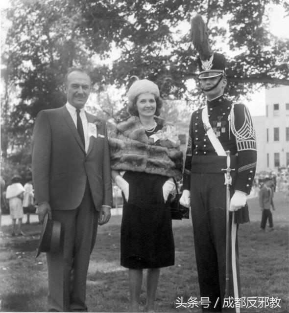 所谓军事学院其实是私立中学,类似的学校在纽约、麻省周边有许多间。美国的权贵子弟,多半在中学期间要去学费昂贵的私立中学住宿几年,准备毕业之后前往常春藤大学就读。上世纪七十年代之前的哈佛耶鲁并不注重成绩,收的多半是来自这些私立中学的权贵子弟。图为就读于纽约军事学校的特朗普与父母合影。