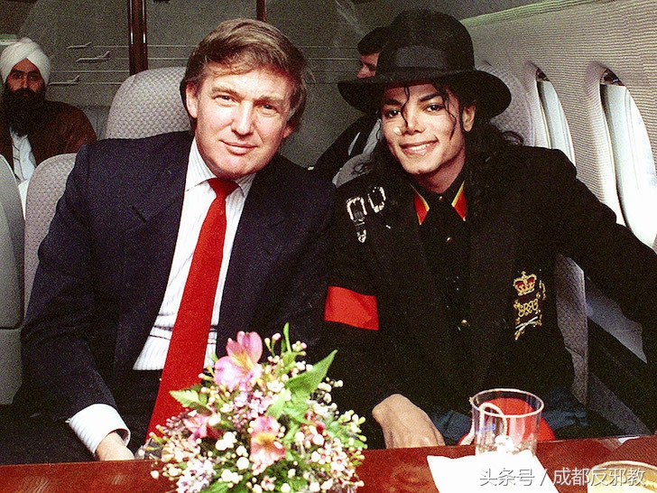 他也投资金融资产,包括帕克?阿德南公司(原为阿德南公司集团〔adnanco group〕)占有的17.2%,一个以百慕大为基础的金融服务机构所持有的公司。在2003年末,特朗普与兄弟姊妹们卖掉了已故父亲的地产帝国给一个投资团体,包括贝恩资本、kkr公司与兰博努尼银行(据说卖了6亿美元)。图为图为90年代,特朗普与流行天王迈克尔-杰克逊在飞机上合影。