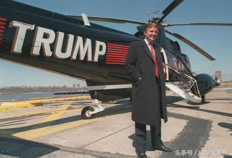 1988年3月,特朗普在曼哈顿与自己的3架直升机合影。
