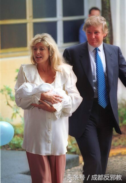父亲的不满与家庭的压力,还导致大哥染上酗酒的恶习,因此失去飞行执照,之后前往佛罗里达做捕鱼生意,又遭遇失败。大哥最后只得灰溜溜回到父亲的公司,在建筑维修部之中任职,不但要面对大失所望的父亲,还要面对飞黄腾达的弟弟,成天郁郁寡欢借酒浇愁,不幸在43岁死于酗酒过度。图为特朗普怀抱刚刚诞生的长子合影。