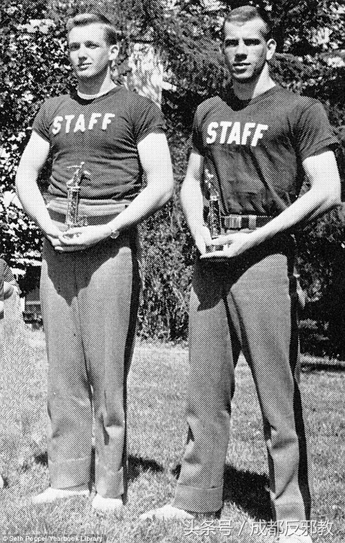 上初中的时候他又更进一步,时常与别的同学一起偷偷搭车跑去市中心曼哈顿玩耍。又学着从电影里看到的情节,收藏弹簧刀,按钮一摁刀锋弹出,很是威风。初一快结束时,父亲发现他私自进城,又搜出他收集的弹簧刀,勃然大怒之下决定将特朗普送去城外的纽约军事学院住校就读。图为特朗普是个运动健将,图为他就读纽约军事学校时与足球队队友合影。