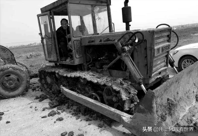 走着走着,眼前出现一条长长的黑龙。总算到了推土机排的工地,推土机手们正在推草皮。这条草皮,从眼下延伸出去,拐了几个弯,进入山的那边。土黄色的大地上,一条又粗又长的黑龙卧在大地上,也着实壮观。