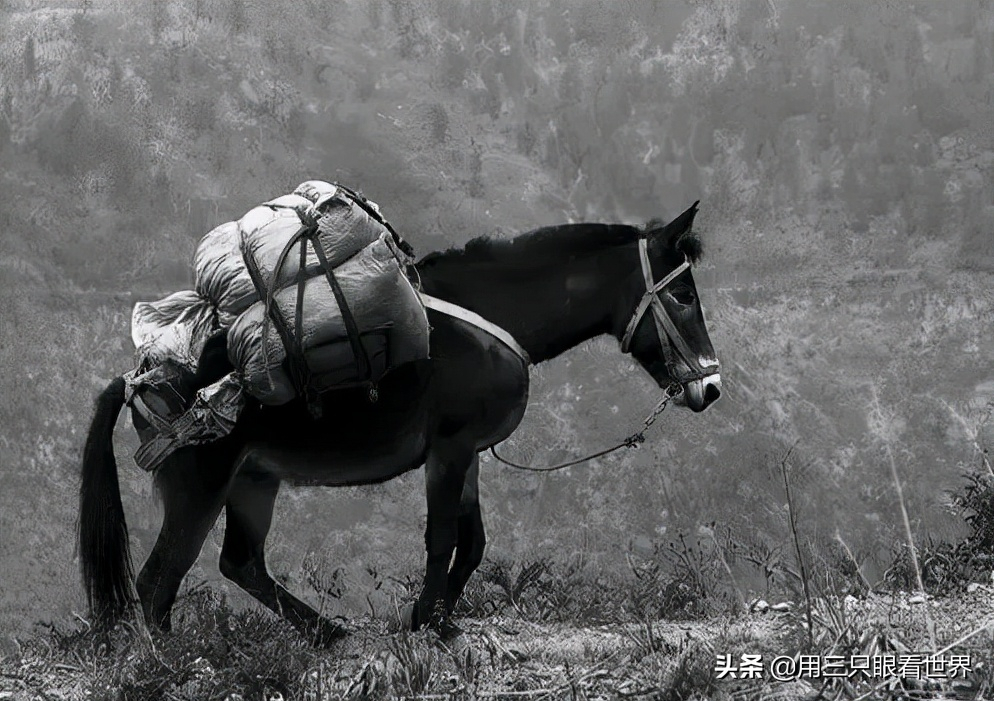 上午十点来钟,我和赵干事以及连队送饭的捎钢筋的一行五人牵着驮着午饭的马儿出发了。