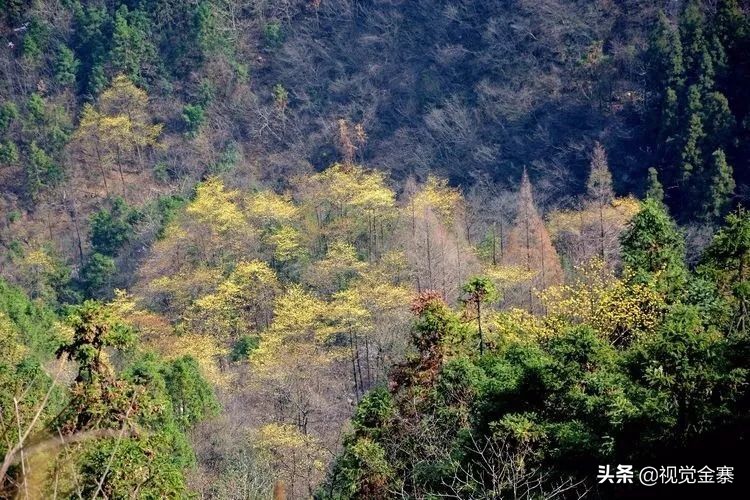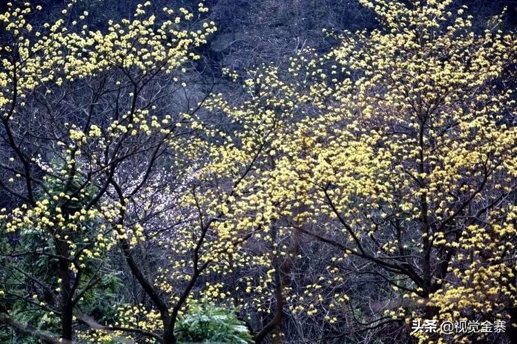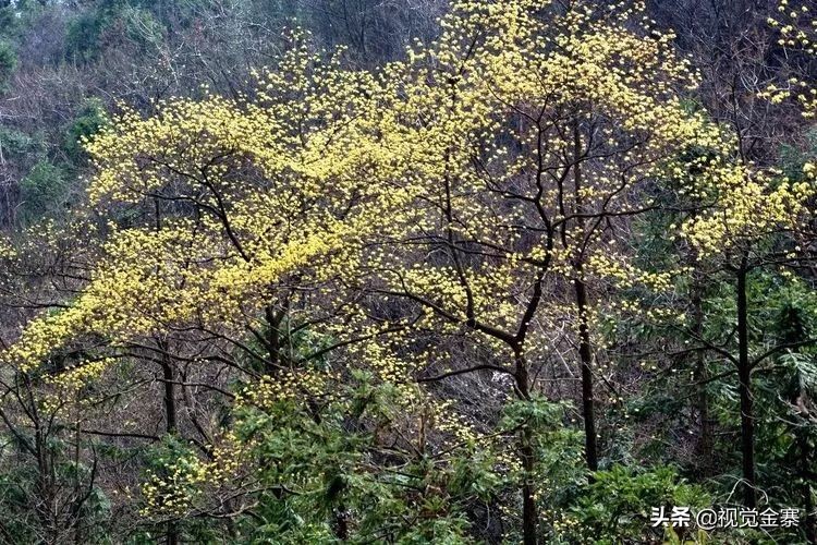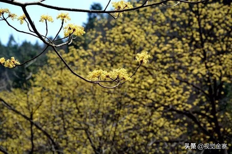 若是三月初来登韭菜岩,黄花沟里满目黄色。高大的檫木盛开着金色的花朵,将一沟春色染得金黄。