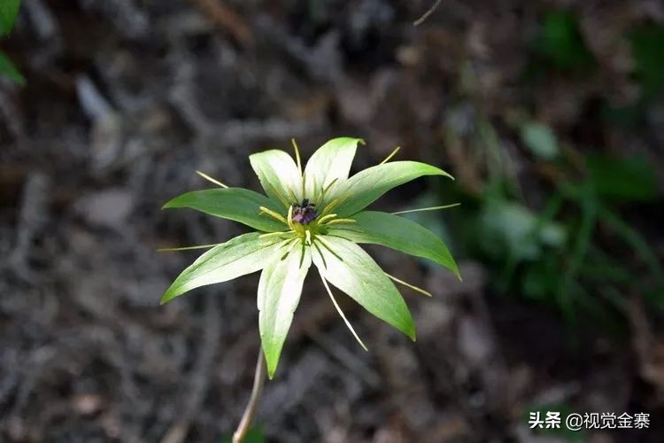 韭菜岩上药材很多,有很多是名贵中药材。这是野生的七叶一枝花。
