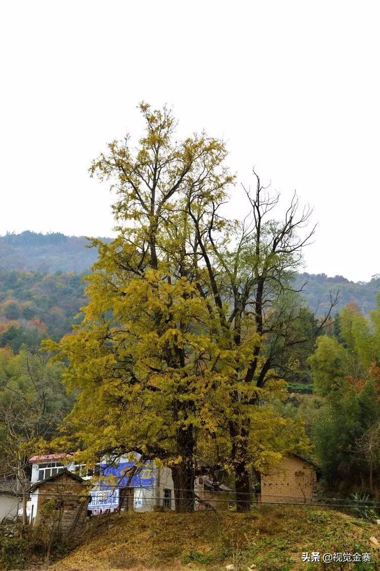 登山路口,千年银杏和千年国槐并肩携手,缘定三生。