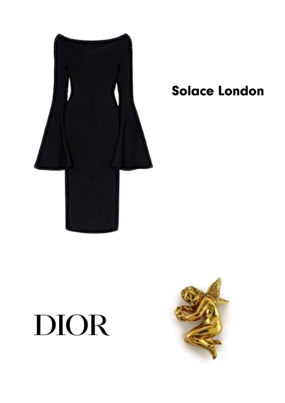 在偏暗沉的底色上,配饰就显得极其重要,她很精心地用dior angel brooch胸针点缀在solace london连衣裙上,一切都拿捏得刚好,释放成熟优雅的美丽。