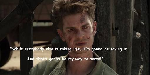 作为一名军人,他坚持信仰,拒绝携带武器上战场,即使是小刀他也不愿意碰。