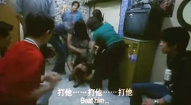 阿鸡被打倒在地,大王顺势将椅子夹着阿鸡的头部,并用双脚踩着他手臂。他们一边虐打阿鸡,一边向他发问。众人情绪失控,越打越兴奋。就连本来旁观的女童党也加入袭击的行列。众人采取了一系列惨无人道的手段对阿鸡实施惩罚。