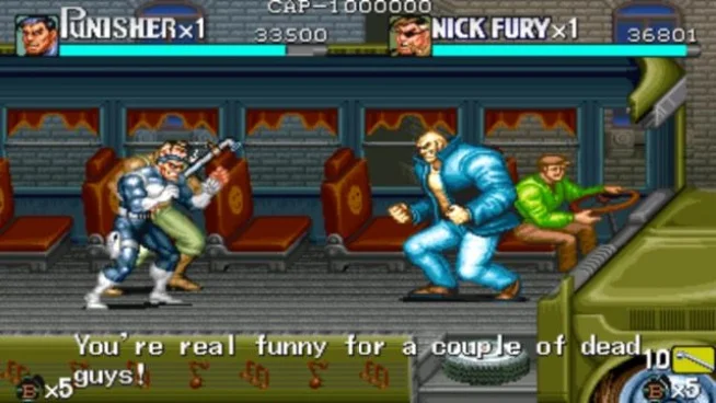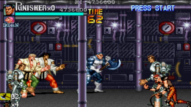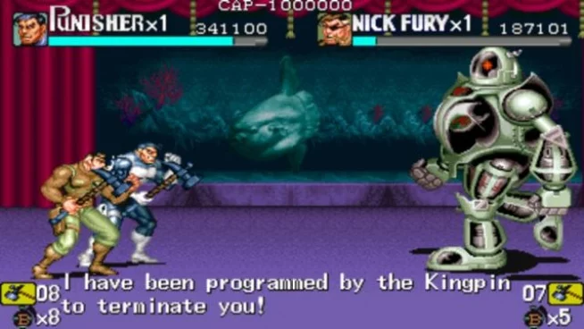 "??《惩罚者》是一款由capcom于1993年发行的格斗通关类游戏,游戏的人物造型巨大,由于本作只有两位主人公, 因此只支持双打,一路上, 惩罚者和尼克局长了解到是一个代号"the kingpin"的黑帮老大策划了这一系列城市犯罪,最终和他在王者大厦展开最后的决战,不同的主角会触发不同的幕间对话。