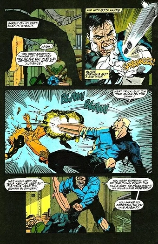 "?第一关boss名字叫scully,是一个学过忍术的打手,bruno雇来的保镖,最后被主角们放翻。第一关讲的是惩罚者们过分复仇打击黑帮引来了仇人bruno,bruno看见了惩罚者后扭头就跑,punisher用枪逼着scully交待了bruno的居住场所。