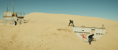他们四人挖了一天,发现沙丘中的金属居然是德国潜艇“红魔鬼号”。