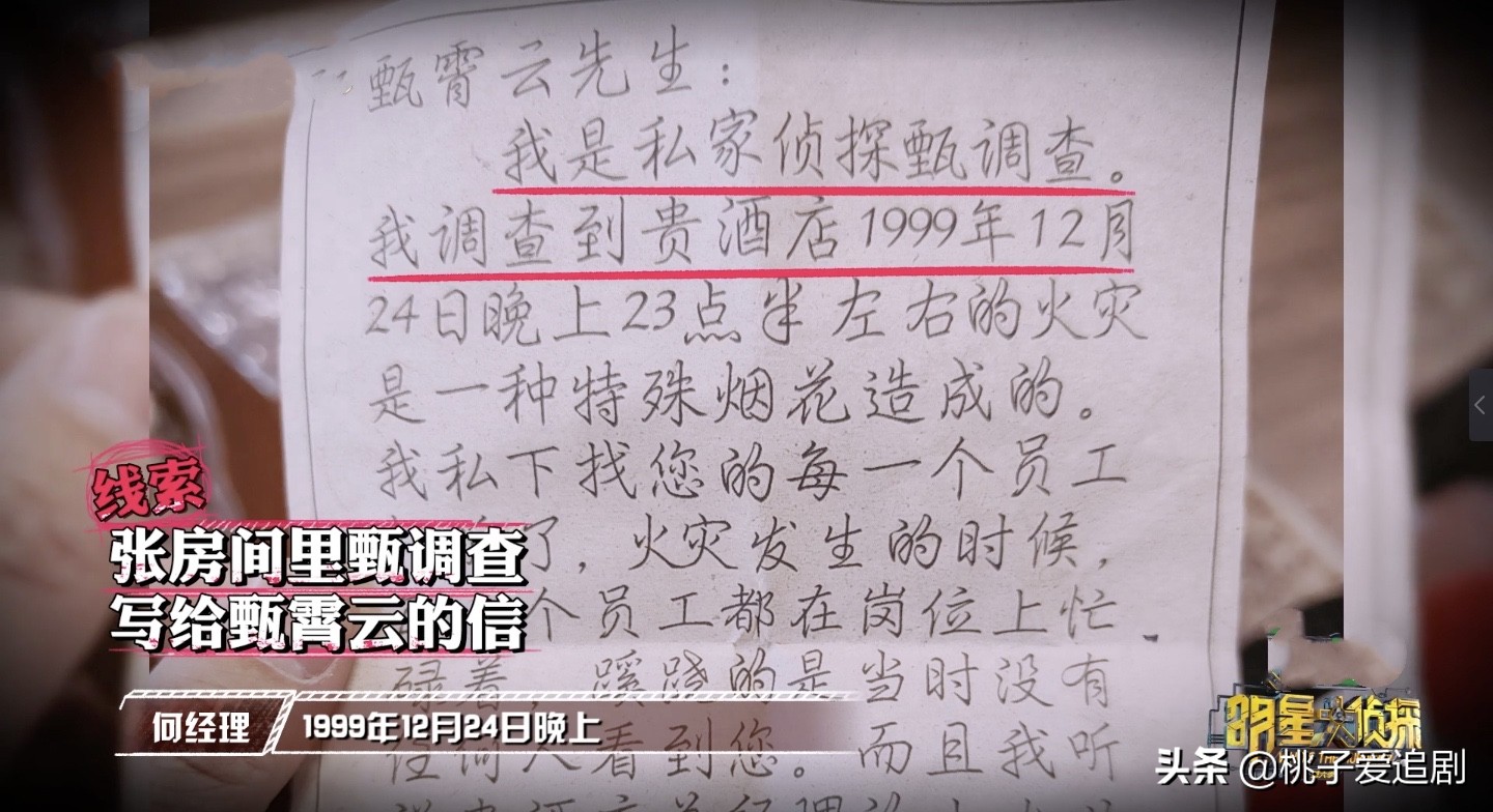 2、甄调查曾受邀调查1999年霄云大酒店的火灾案,且疑似找到了案件真相。