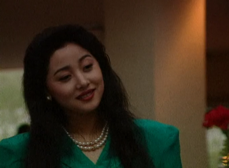 波浪卷发,高垫肩、亮色西装,放在现在看依旧不过时。