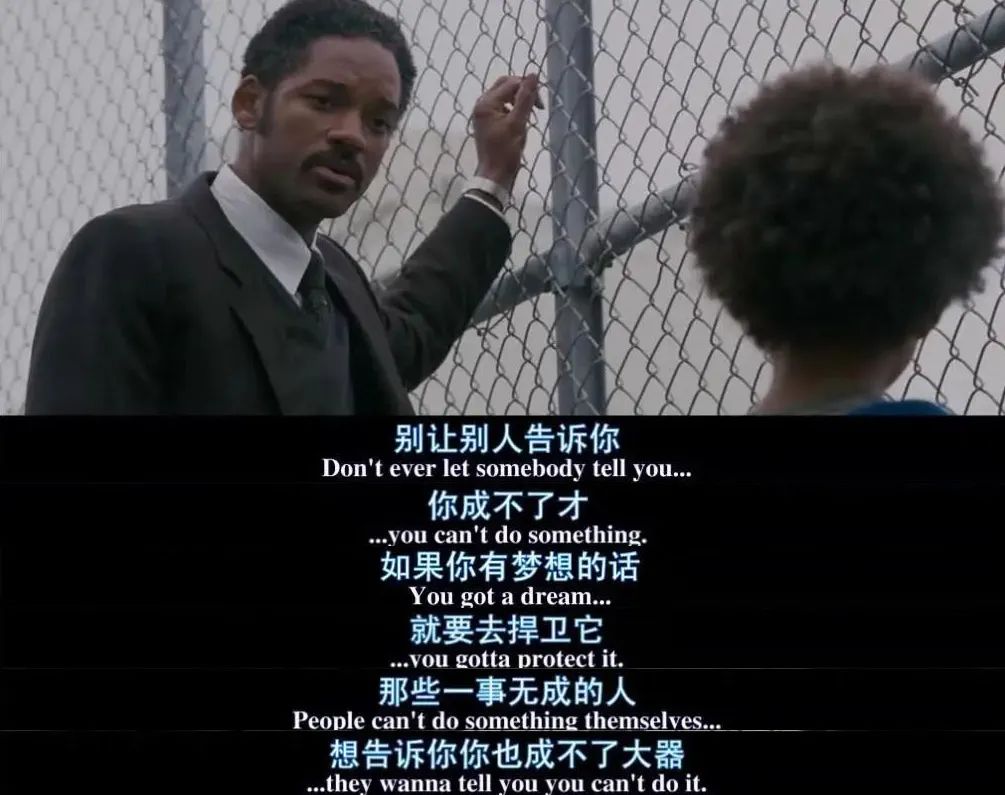 这让我想起了《当幸福来敲门》里威尔·史密斯对儿子说的话: