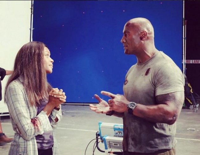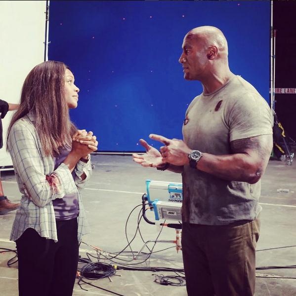 在最新曝出的片场照中,巨石正在跟女主角娜奥米·哈里斯交流。二人穿着的戏服布满血迹,似乎刚经历完一场恶战。强森在文字中写道:“和奥斯卡最佳女配角提名者娜奥米·哈里斯的合作简直是梦想成真。她的表现实在太精彩了,能和如此美丽且高水准的女演员共同演出是我的幸运”。