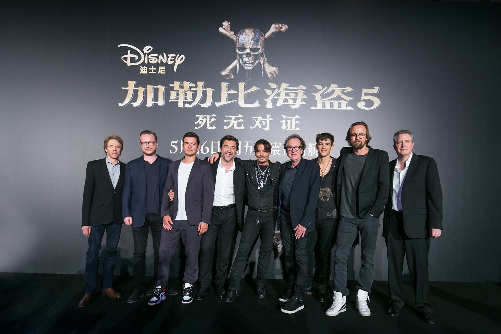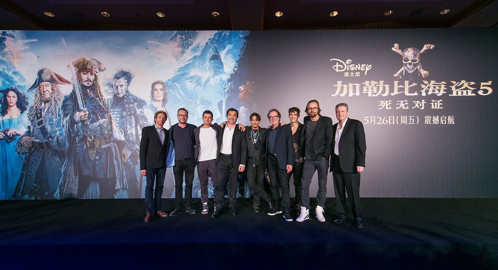 猫眼电影讯 5月12日,由迪士尼影业制作出品的史诗动作冒险巨制《加勒比海盗5:死无对证》今日在上海举行新闻发布会,约翰尼·德普携奥兰多·布鲁姆、杰弗里·拉什、哈维尔·巴登、布兰顿·思怀兹等主演,和制片人杰瑞·布鲁克海默、导演艾斯彭·山德伯格、乔阿吉姆·罗恩尼、编剧杰夫·内桑森(等幕后主创集体出席,璀璨群星揭秘台前幕后,为影片造势。两周之后的5月26日,《加勒比海盗5:死无对证》将在内地公映,气势磅礴的奇幻历险再度盛大启航。