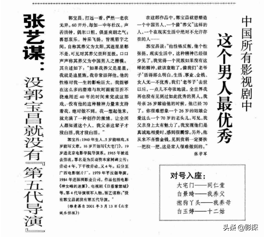 有人问到了郭宝昌,他只说这戏里的故事,七分真,三分假。
