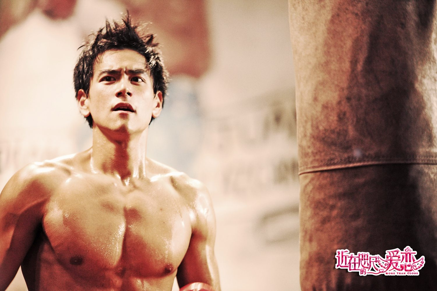 在《近在咫尺的爱恋》中彭于晏饰演的是一个自恋甚至有点自负的拳击手,受尽追捧的他极爱满嘴跑火车,是个不折不扣的逗比大男孩,但面对病重的爷爷与一起战斗的伙伴也拥有乖小孩一般童真之心。为了贴合拳击手的身份,彭于晏在影片中自然大秀了一回肌肉,养眼的画面一定会满足所有女性观众的眼球。