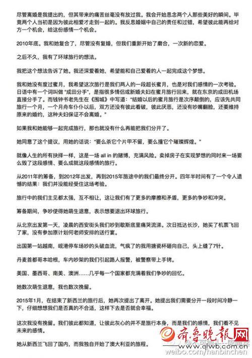 前妻接受采访的时候说环球旅行并不是自己的梦想,只是觉得如果自己在家等着,也许就再也见不到自己老公了,不如一起去,就当一次真人秀了。这男的追求梦想就是把车子房子都卖了,带着新婚的老婆出去,然后和有夫之妇搞在一起,让老婆伤心退出。何老师已经是很有涵养很给面子了,但依然无法克制对他的不满。